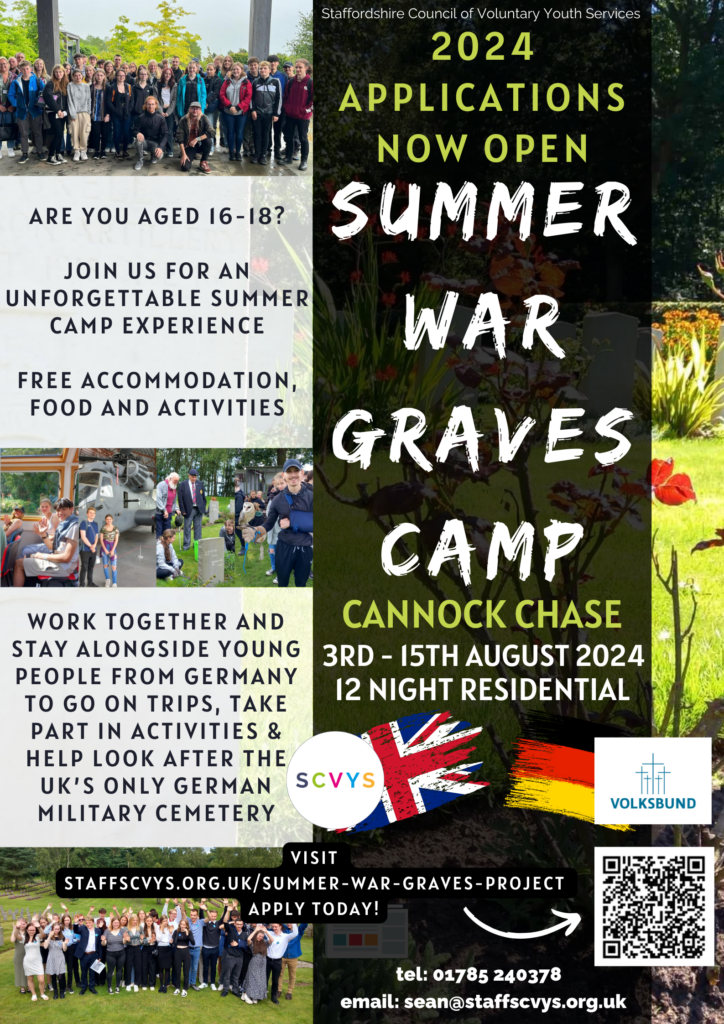 Young people aged 16 to 18 are invited to apply for the Summer War Graves Camp at Cannock Chase. Working together with the German War Graves Commission, SCVYS are pleased to continue the delivery of this exciting programme. Young people from Staffordshire and Germany come together to find out about each other’s cultures, learn about […]