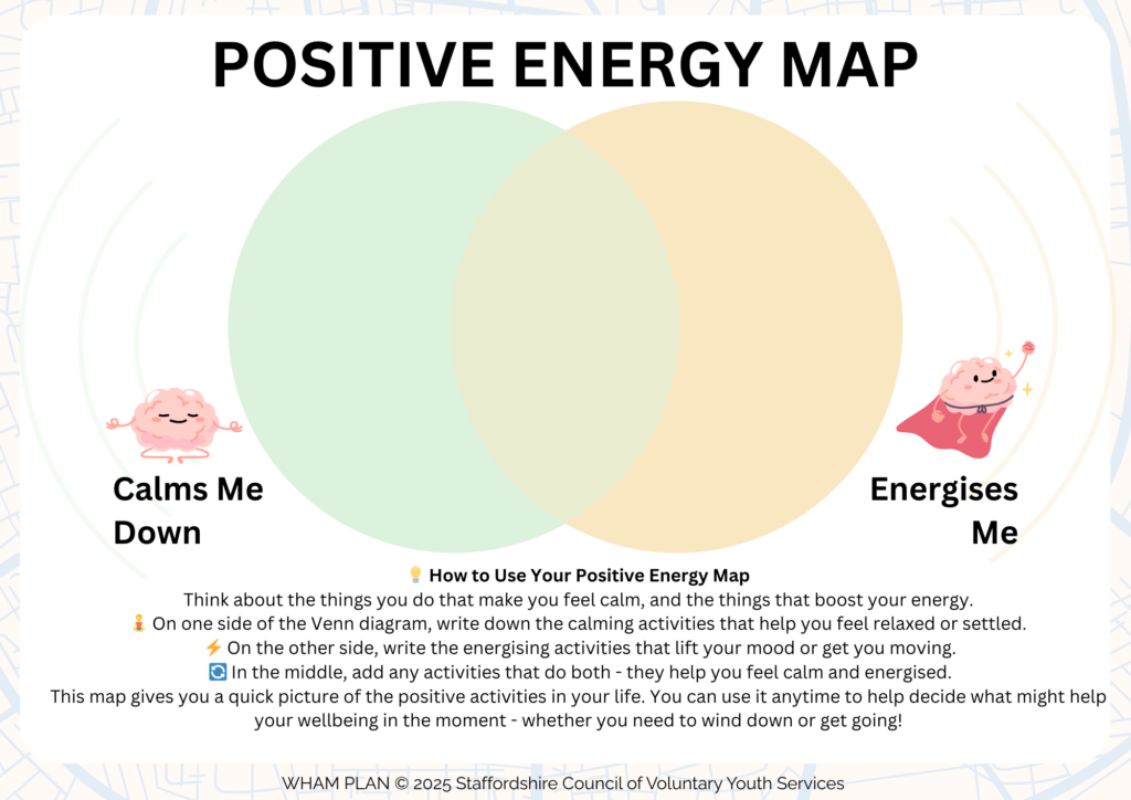 The Wellbeing and Health Action Map (WHAM) Plan is a series of fun, practical sessions about emotional wellbeing — created by young people, for young people (ages 11–18).
