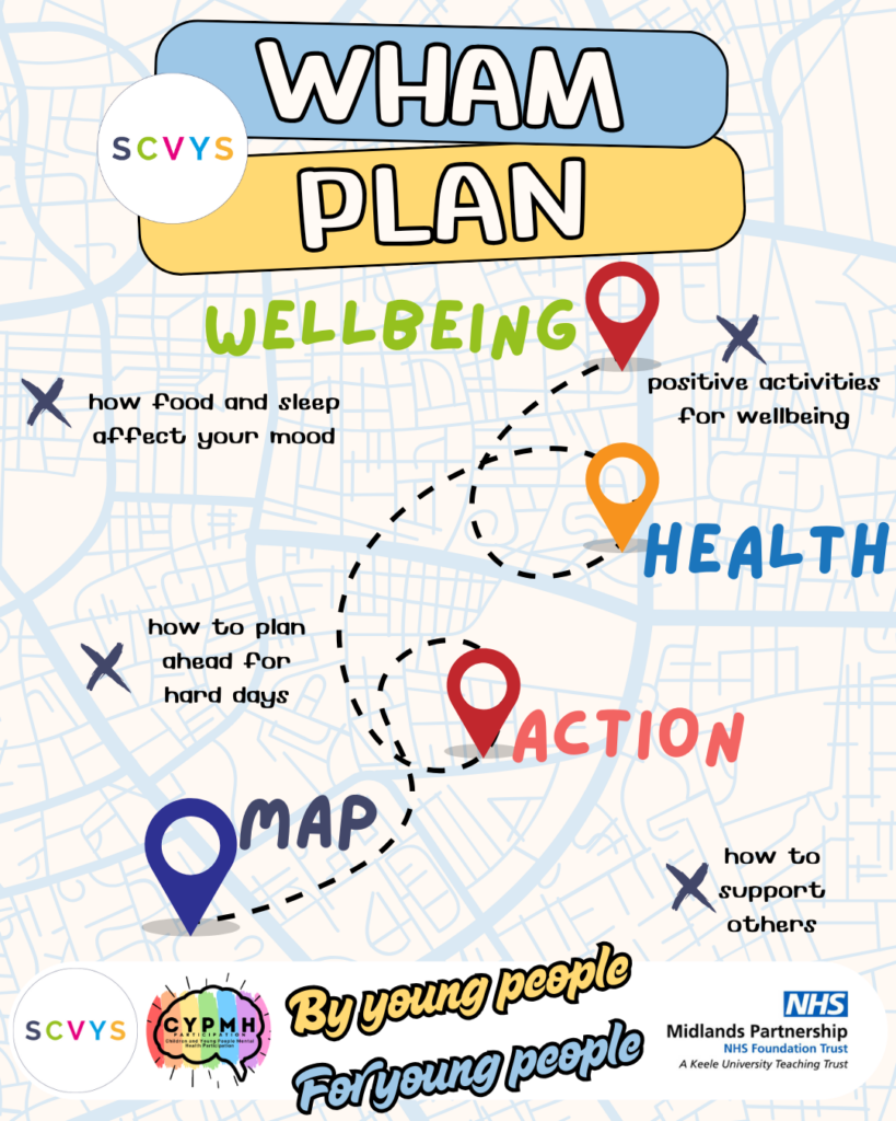 WHAM is a discussion and activity-based course designed by Staffordshire young people in Co-production with SCVYS and NHS Midlands Partnership Foundation Trust. It’s at its best when young people are supported to deliver it to their peers.